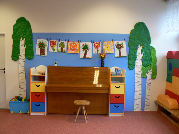 Postup: Malým dětem jsem obkreslila ptáčka na čtvrtku tvrdého papíru. Děti jej podle vlastní fantazie vybarvily suchým pastelem (křídou), který rozetřely prstem (vatou). Ptáčkům jsme dolepili oko (zmačkaný krepový papír) a domalovali zobáček. Nakonec jsem je dětem vystřihla. Na nástěnce jsou ptáčci umístěni kolem krmítka, na kterém jsou nasypány zrníčka. šablona ptáčka (obrázek JPG ke stažení)