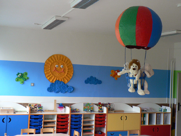 Na karton nebo tvrdý výkres si tužkou nakreslíme obrázek, do tapetového lepidla namočíme noviny, lehce vymačkáme přebytečné lepidlo a pokládáme na obrázek na kartónu, vrstvíme a tvarujeme podle potřeby, necháme dobře proschnout, někdy schnutí trvá i pár dní, pak přelepíme měkkým bílým papírem namočeným také v tapetovém lepidle – tato vrstva se dává proto, aby lépe kryla barva, hotový výtvor pak natřeme Balakrylem, necháme zaschnout a vyzdobíme s ním třídu.