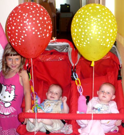 Moje děti Kristýnka a Davídek (8m) si nejraději vyhrají jeden s druhým a když se k nim přidá jejich sestřička Lucinka (5let) tak to se tu pro hlasitý smích ani neslyšíme! A v poslední době měli ohromnou radost s létajících balónků. Proto zasílám dvě fotografie.