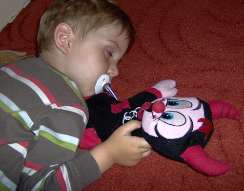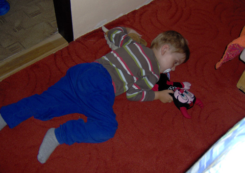 Můj syn Pavlík Ipser (3 roky) si nejraději hraje s autíčkama, vláčkama a ještě raději čte písmenka a čísla. Není ani divu, že po takové “námaze” to často dopadne takto…