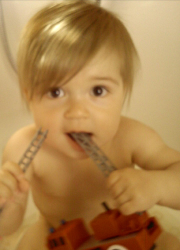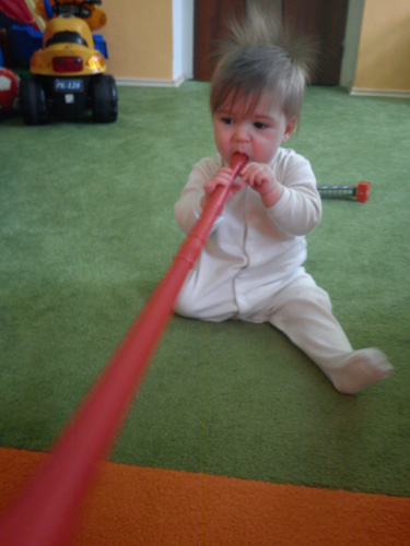 Vašíkovi se nejvíce líbí cokoli, co může strčit do pusy a hučet do toho během všech činností, které během dne dělá. Ať už je to kartáček na zuby, lžička, píšťalka nebo třeba vuvuzela. Miluje a baví se zvukem, který z něho vychází. V tu chvíli nepotřebuje nic a nikoho krom “hučícího předmětu”. (Lenka Svobodová Šťastná, Louny)